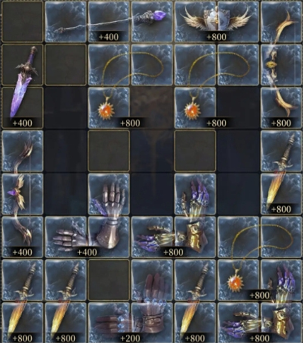 2、弓箭,一根法杖和盾牌(大约3/4关开始),尽量升到顶部,紫色也可以。